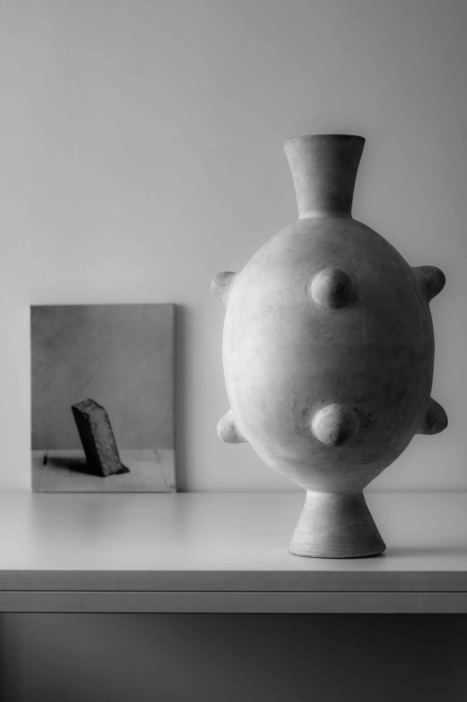 Le vase « Mine » d’olivier Gagnère n’a pas frémi au déclic de mon Leica, ni la photogravure « Pierres » de Marie-Pierre Morel. Dans cette situation minimaliste, vous nous invitez à explorer le sens du beau pour approfondir les résonnances qu’il trouve en nous. #inventaire#naturemortephotography #vasemine #photogravure#blackandwhitephotography @gillesdalliere @oliviergagnere@mariepierremorel @tourrette_paris