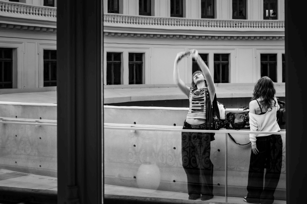 Je selfie donc je suis. Au bout de mon bras, au bord du vide de béton de Tadao Ando, c’est moi, et moi, et moi… Poésie des gestes fabriqués par une époque qui en disent long sur l’époque elle-même et sur les individus qui évoluent dans ladite époque. #selfie#streetphotography_bw@gillesdalliere@boursedecommerce
