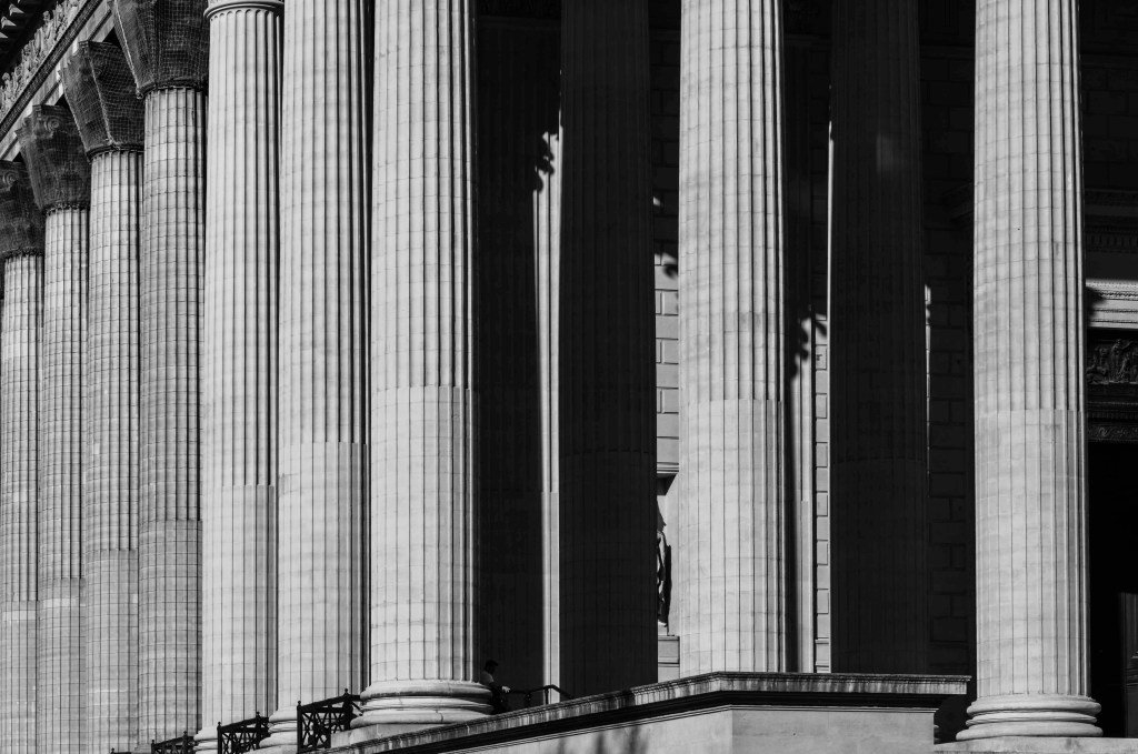 Temple périptère à colonnes corinthiennes, la Madeleine est un des meilleurs exemples de l’architecture néoclassique à Paris. Elle marque la volonté délibérée de Napoléon de retrouver la grandeur antique pour célébrer « le souvenir de la gloire impérissable de l’Empereur, et celle de ses compagnons d’armes ». Tout en la photographiant, tout imprégné de la série « Le maître du haut château » sur Netflix, je me suis mis à supposer qu’un jour les monuments de Paris seront couchés sur la poussière de son peuple, comme sont couchés sur la poussière des Chaldéens et des Arabes ceux de Babylone et de Palmyre. #lamadeleine#blackandwhitephotography @gillesdalliere