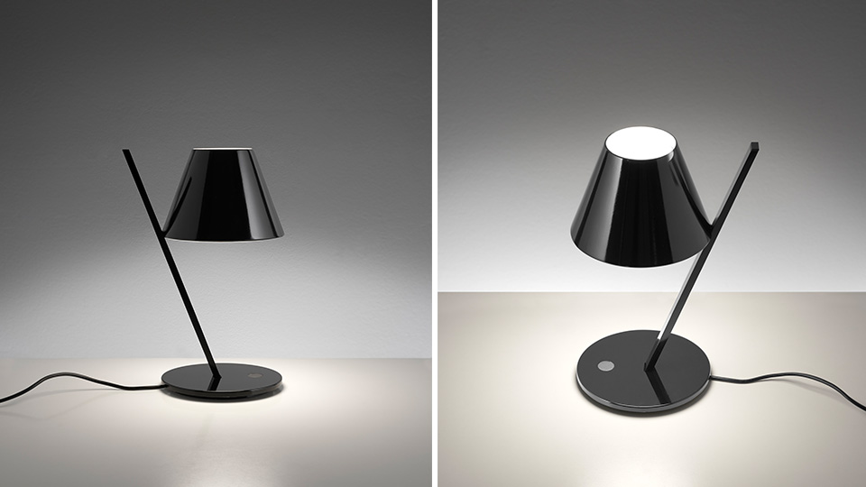 Un archétype, abat-jour en équilibre sur une tige inclinée. De simples éléments unis d’une manière élégante pour étonner par leur composition géométrique correspondent à des formes élémentaires associées à des matières différentes pour des raisons technologiques.Le savoir-faire d’Artemide s’exprime même dans une lampe apparemment si simple et essentielle. L’abat-jour est un léger volume plastique fermé par deux diffuseurs qui produisent une lumière agréable, douce, directe et indirecte. Le joint maintient l’abat-jour sur un point d’appui minimal en le reliant à la tige en aluminium. Ces quelques éléments définissent un ensemble simple et élégant où l’inclinaison de la tige est équilibrée par le volume de l’abat-jour. »La Petite » est signée du duo créatif Quaglio Simonelli.