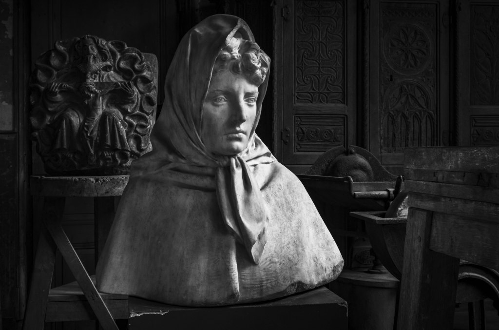 Passer trois heures à baguenauder dans l’atelier d’Antoine Bourdelle… J’aime l’obscurité de cette pièce. La pierre sculptée capte l’extrême pointe de la clarté du jardin. Les reflets blanchâtres du buste, comme s’ils étaient impuissants à entamer les ténèbres épaisses des panneaux de boiseries, rebondissent en quelque sorte sur cette obscurité, révélant un univers ambigu où l’ombre et la lumière se confondent. Ce n’est pas une clarté ordinaire, elle possède une qualité rare, une apesanteur particulière, accentuée par le rythme visuel de son œuvre aux effets archaïques.