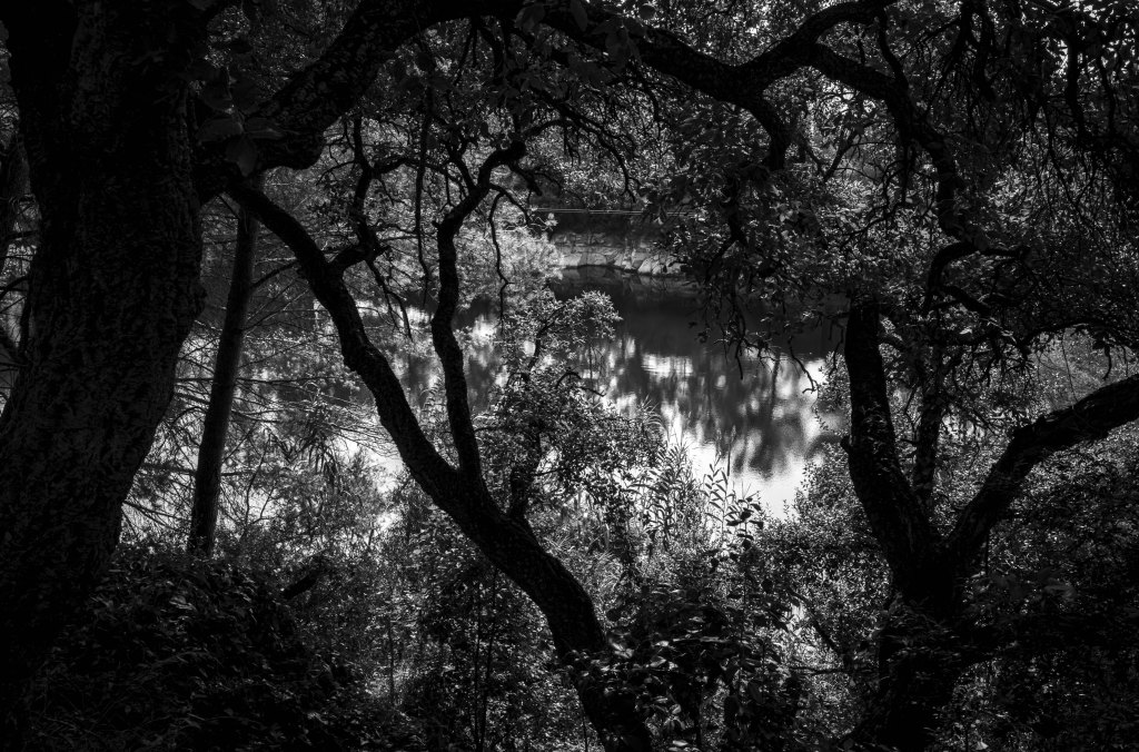 Ça sent bon le pin maritime et la terre humide. Une brise légère fait valser la cime des chênes-lièges tandis que les buissons près de l’eau se contentent d’un timide tremblement. L’air chaud et lourd me pénètre les poumons. Le temps c’est arrêté. Les chorales de grenouilles et les symphonies de criquets ont fait place au sifflement du vent qui fuit entre le noir des branches dénudées. Les baies chaudes et sucrées de l’automne se sont ratatinées et leur suc violent s’est évaporé. L’eau du lac s’est transformée en une étendue parfaitement lisse et figée. Ce n’est plus là qu’une forme du silence avant la tempête.