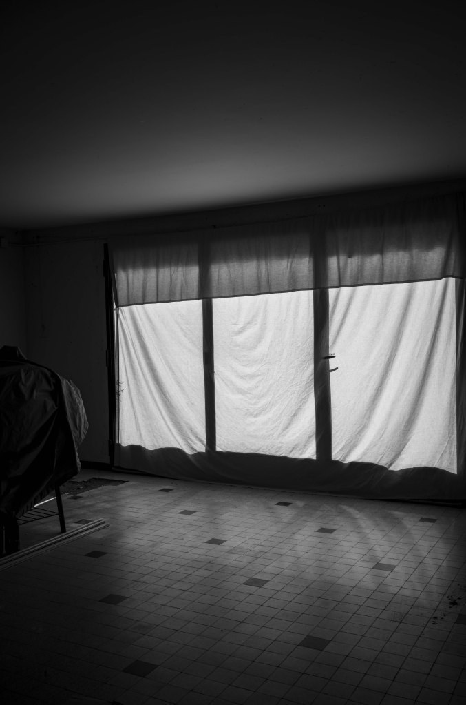 La ténébreuse solitude de ce drap accroché à la porte fenêtre du garage me fait rêver de cinéma.