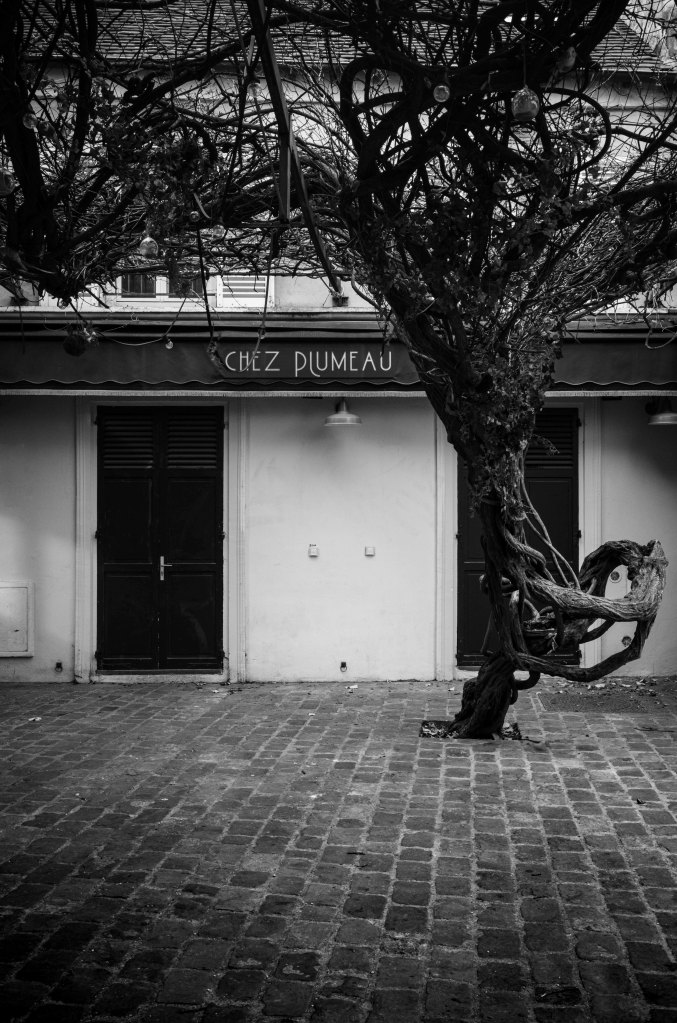 Tout le paysage montmartrois est là, avec ses ombres et ses fantômes. Mais aujourd’hui, place du Calvaire, il n’y a plus cette musique de cabaret entrecoupée de courants d’air et de chutes de fourchettes. Je ne vois plus rentrer les meutes de touristes sous la tonnelle. Les chaises cannées, les larges banquettes de bois, les guirlandes d’ampoules colorées ont disparu ne laissant place qu’au murmure du pavé. Il s’agit de devenir silencieux pour que le silence nous livre ses mélodies. Il s’agit d’attendre pour que l’attente fasse enfin jouer ses ressorts. Réinventer Montmartre parce qu’elle est pour la plupart une jeunesse.