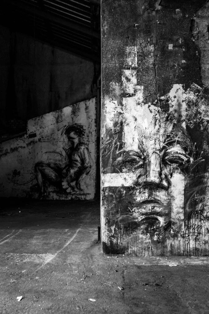 Un matin, j’ai glissé à l’intérieur du vide des usines Barriol & Dalliere. Dans cet étrange intervalle, je restais immobile devant ces murs, captivé par la beauté de l’architecture ouvrière, par une soudaine perspective, où les formes et les couleurs vous sourient. Et puis il y avait le dessin de cette tête étrange, homme, femme. Une sorte d’épouvantail, cancrelat de sortilège, poisson-sorcier. Il y avait du vaudou dans l’air. Du coup, cette tête prenait l’aspect menaçant d’un rite. Elle m’a jeté un sort.