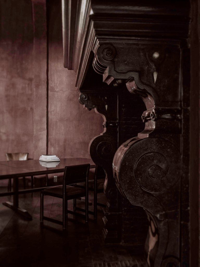 Yoshida Kenzo (1283-1350), extrait du Tsurezuregusa, « Les heures oisives ». Ici, une beauté indescriptible exsude des murs et dans la lumière diffuse, j’apprécie l’usage récurrent de l’ombre. Les imperfections y prennent une importance toute particulière, la cheminée impose sa renaissance, le mobilier résiste aux tendances. La maison de Boris Vervoordt résonne d’une harmonie discrète en plein cœur du quartier historique d’Anvers : le Vlaeykensgang.