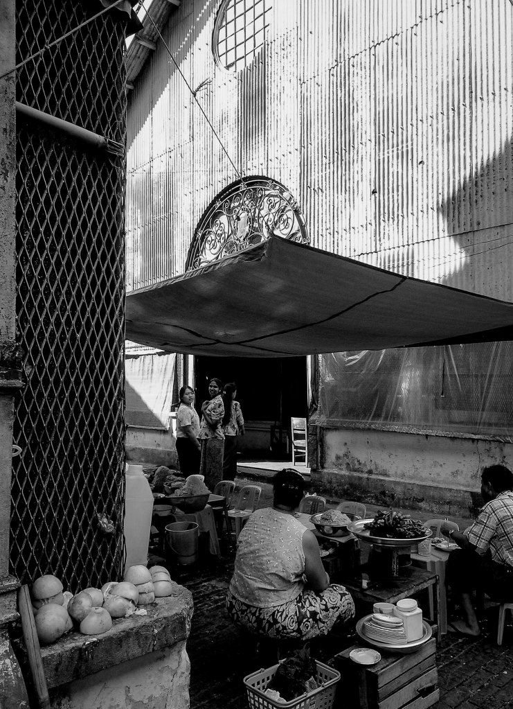 Le marché Bogoyke Aung San, construit par les britanniques en 1926, est connu pour son architecture coloniale et ses ruelles intérieures pavées. Toutes les modes les plus sensationnelles d’Asie s’y étalent. Des femmes kachins sont vêtues de sarraus chinois, une spirale argentée en borde l’encolure avec élégance. Des palaungs enturbannées mâchent le bétel à longueur de journée jusqu’à se marquer les dents et les lèvres de traces indélébiles. Les taungthus sont habillées de chemises vagues bleues indigo. Les shans minces ont un genre plus recherché et dans la foule disparate du marché, elles font figure de grandes bourgeoises. Leurs grands chapeaux champignons les dérobent aux regards jusqu’au moment où elles lèvent les yeux, alors on contemple parfois un visage d’une beauté inouïe. Derrière leurs étalages, de jeunes femmes regardent leurs clients avec l’expression distante et hautaine qu’ont les vendeuses dans les commerces de luxe. Shan, Môn, Karen, Kachin, Chin, Rakhaing, avec huit ethnies nationales et soixante-sept sous-groupes, la Birmanie est une véritable mosaïque ethnique, dont le séjour dans le triangle d’or donne un aperçu immédiat et assez déroutant. Car si les Was ne coupent plus les têtes, les Akhas qu’on rencontre au marché de Kengtung portent toujours leurs coiffes ornées de piastres indochinoises frappées de la mention « République française – 1928 ». Une joie pour les nostalgiques.