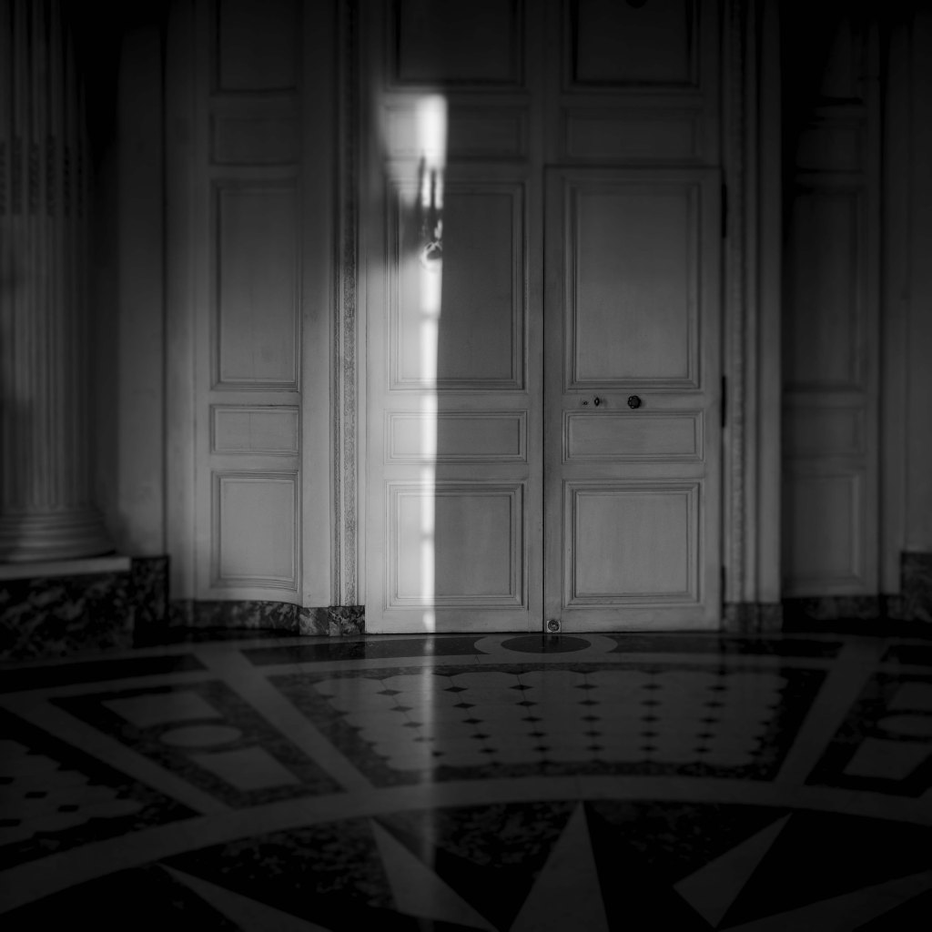 Au Grand Trianon, dans le salon rond, je suis saisi par l’éloge de l’ombre à la lumière. L’instant est éphémère, dense, essentiel. Un bruissement m’attire au niveau des colonnes corinthiennes qui encadrent la cheminée. C’est alors que derrière un tambour de menuiserie un passage donnant sur un petit escalier s’ouvre pour laisser passer les musiciens du roi vers la salle à manger. L’ombre s’est mise à répandre son univers dévorant sur la lumière magnifiée par le soleil couchant.