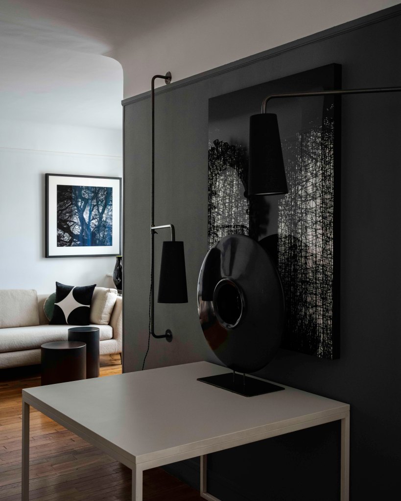 La franche juxtaposition des branches sombres et claires de « Racines » s’affirme comme une esthétique en soi. Elle s’accorde à l’explosion graphique des noirs saturés et des blancs éclatants de la photo de Jean-Claude Gautrand de la série « Métalopolis » galerie W.