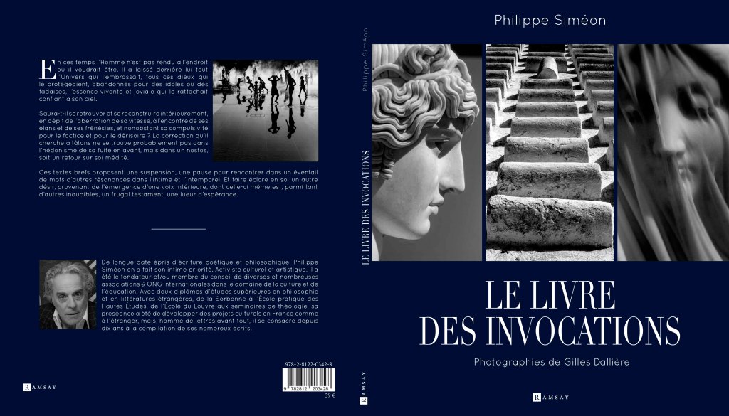 « Le Livre des Invocations » de Philippe Siméon aux éditions Ramsay est en librairie le 26 avril 2022. 152 pages – 39€. Un recueil poétique et invocatoire accompagné par mes photographies en noir et blanc. Ces textes brefs proposent une suspension, une pause pour rencontrer dans un éventail de mots d’autres résonances dans l’intime et l’intemporel. Et faire éclore en soi un autre désir provenant de l’émergence d’une voix intérieure, dont celle-ci même est, parmi tant d’autres inaudibles, un frugal testament, une lueur d’espérance. Pas une de mes images n’est ici indifférente ou hasardeuse.