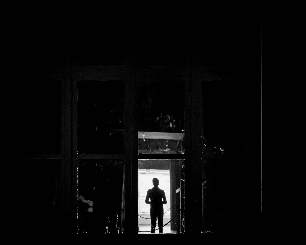 C’est une image sombre, très sombre, qui exclut la mise en scène. Ces moments-là sont rares. Ils arrivent sans qu’on les attende, souvent dans les temps morts, quand ça n’a pas d’importance, et que soudain quelque chose me fait cligner de l’œil, comme ça, en passant et alors je cadre pour voir. C’est un autoportrait instantané, tiré au bout de l’œuvre exposée des Lalanne au MAD. Un autoportrait, avec tout ce que ce mot là implique pour moi de hasard et de joie.