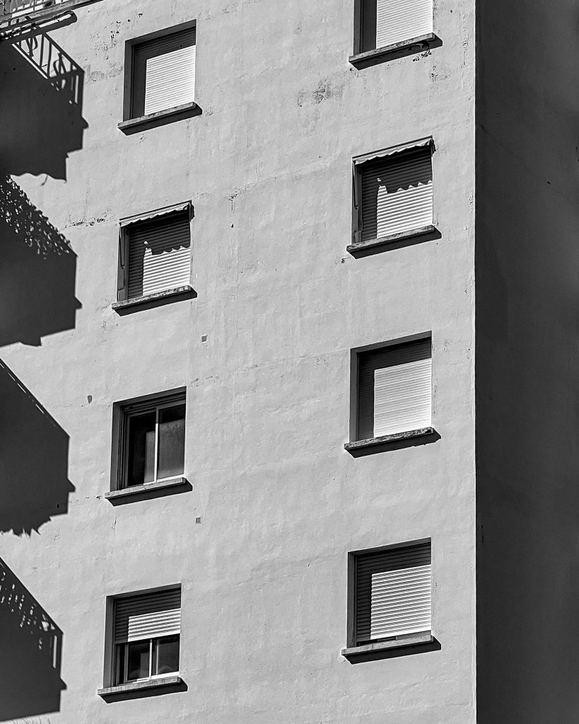 Quand j’obture les ouvertures, portes ou fenêtres, par des stores, les interstices laissent filtrer la lumière. Elle est une incision dans les ténèbres. Et puis il y a cette façade, cette dialectique du vide dans le plein et du plein dans le vide, de l’aveuglement et de la lumière, celle de la liberté d’esprit créateur.