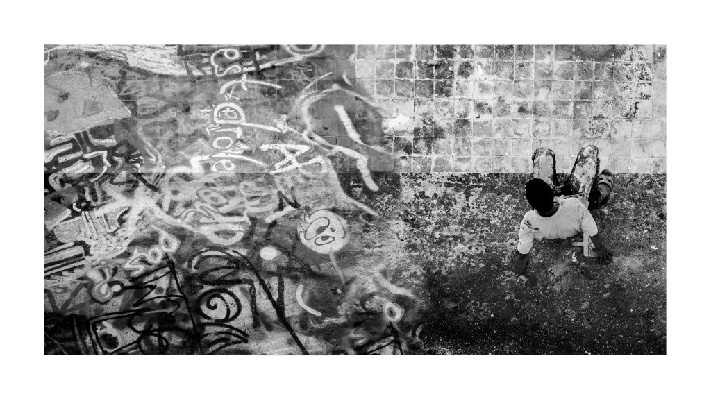 Signature : un temps infini s’écoule dans l’immobilité. Le jeune homme n’a pas bougé, son corps s’est ralenti, et ses mains pèsent un poids démesuré. Ses yeux ne cillent plus, et quelqu’un qui entrerait dans l’image serait effrayé par la fixité de son regard. Il est descendu dans les profondeurs du Street Art. Il s’y baigne comme un enfant, il sait que tant qu’il sera là, dans ce lac de signes et de lumière, il n’aura pas d’autre devoir que de maintenir le reflet du ciel dans la pureté de son pressentiment. #j+5 #exibition #expositionsparis #parisphoto#signature #galeriedavidghezelbash@mariedarblayvitaldurand @joelle.balaresquehd@gillesdalliere #lensculturediscovery @lensculture@anne_eveillard