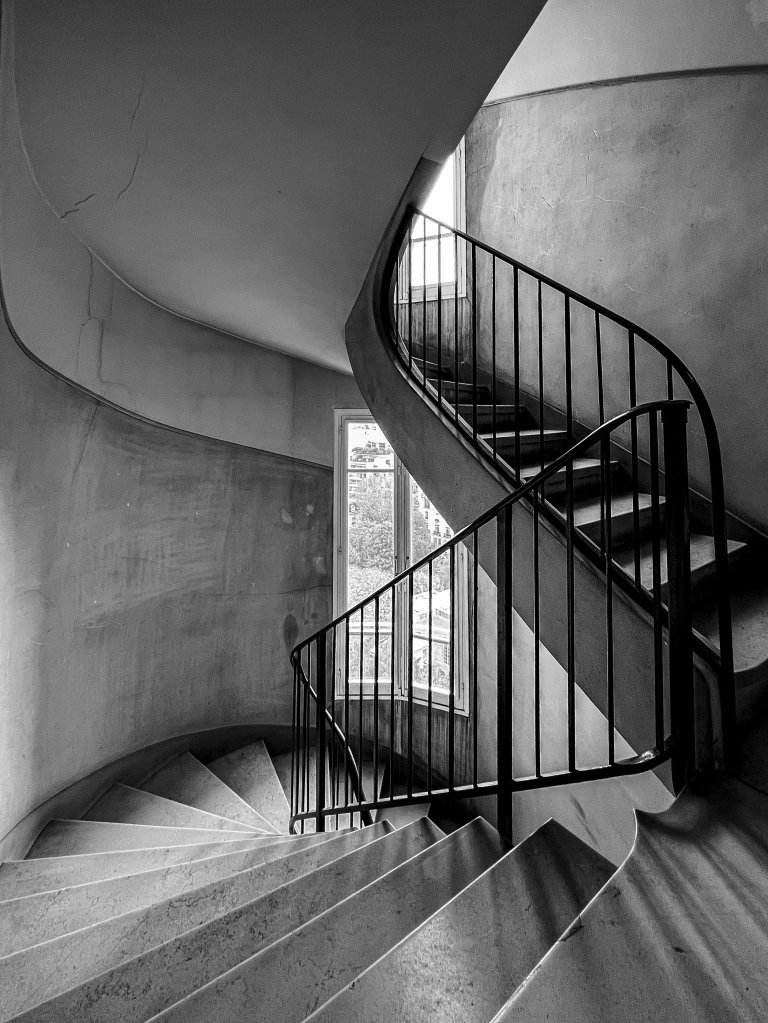 Encore et toujours l’escalier. Il abrite un mythe particulièrement riche. Les architectes en ont imaginé, construit ou représenté sous toutes les latitudes. Une construction dont la symétrie semble faite pour m’attirer à monter. Même vertige introspectif avec cette rampe qui s’étire d’un angle à l’autre. Les volées de marches me lâchent à l’endroit même où elles me prennent. Seule une vue plongeante donne une idée du lieu où je suis. Merci monsieur Perret. #paris #escalier #architecturephotography#augusteperretarchitect #blackandwhitephotography@gillesdalliere