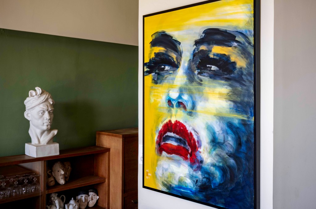 À la Villa Alfonsa, Éric Raffy peint. Il part du principe que l’image est la représentation mentale d’un produit, d’un parti, d’un être humain, je peux affirmer que l’image dominante est le plus souvent celle d’un trans plus que celle de la question transidentitaire. Le personnage devient l’objet d’une identification ou d’un rejet, d’une protection qui n’est rien moins que la nôtre. L’avènement du royaume de l’image est en partie responsable de la personnalisation : dans ces conditions, a-t-on le droit de s’étonner qu’un homosexuel efféminé représente les folles, un trans ultra maquillé un phénomène de foire ? #peintureacrylique #portrait #transgender @ericraffy#villaalfonsa #maisondhotesdecharme #frenchrivieralife#ledramont @gillesdalliere