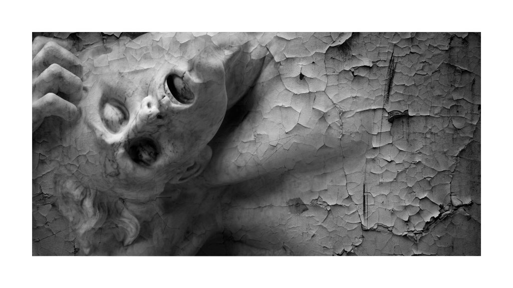 Ce qui domine cette image c’est la douleur. Il est également question de la déchéance. Ce qui s’apparente à des fissures, des craquelures, semblent davantage une évocation de la mort. Je regarde cette image avec la passion de l’œil et du cœur mais aussi avec un éclat de glace. #expositionsparis #clair/obscur #sortilège #exibitionart@ateliermendil #blackandwhitephotography @gillesdalliere