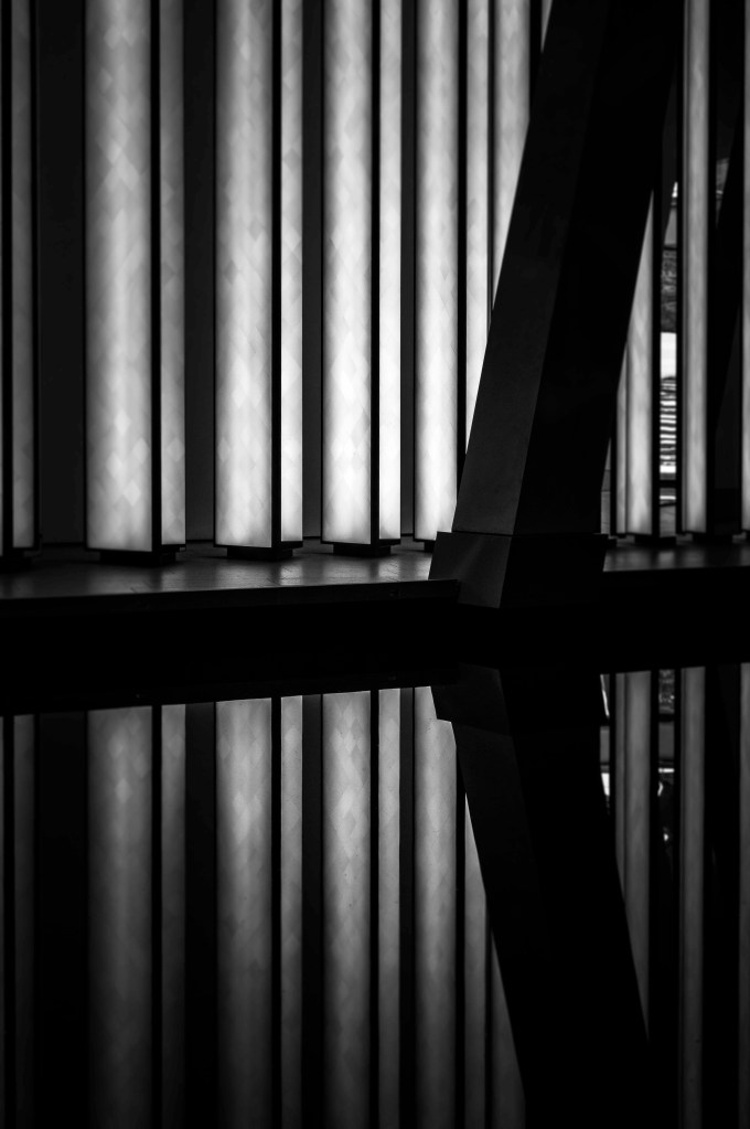 Face à la couleur, le choix esthétique du noir et blanc participe d’une interrogation sur une double mise à distance de l’espace : d’une part, dans l’œuvre, entre fragmentation et abstraction, d’autre part, de l’œuvre, entre « in situ » et matérialité. Le noir et blanc contribue alors à unifier les questionnements sur l’espace représenté et l’espace présenté. Je ne regrette qu’une chose, le passage de quelqu’un devant l’œuvre de Olafur Eliasson. #fondationlouisvuitton #olafureliasson #art #lumière #horizon#grotte #dimension #insidethehorizon #kaleidoscope #reflet#architecturephotography #blackandwhitephotography@gillesdalliere @fondationlouisvuitton
