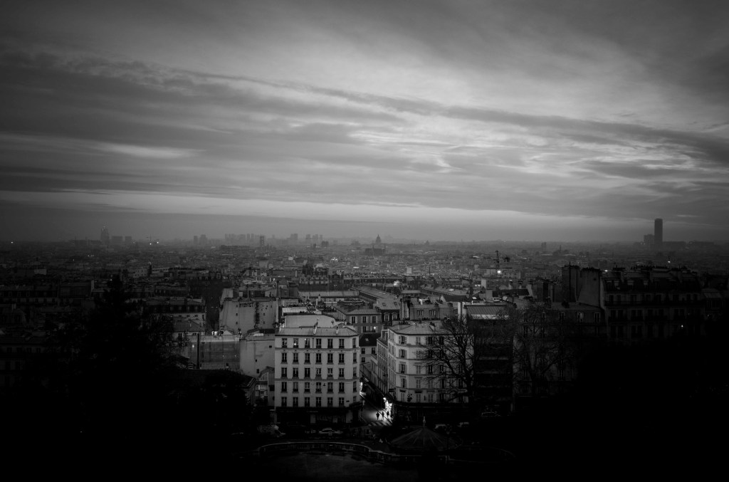 Il faut se libérer des catégories et accepter le flou. Existe-t-il un seul parmi nous qui puisse affirmer avec certitude être entièrement net ? Nous sommes des êtres flous avec un je-ne-sais-quoi de net. Nous nous effaçons de l’intérieur. Mais toujours, lorsque l’œil se détourne et revient pour rencontrer à nouveau l’image, ce qui frappe, c’est ce halo de lumière qui cerne le mystère de nos vies. #paris #vue#montmartre #hiver #soir #crepuscule #froid #halo #lumiere#blackandwhitephotography @gillesdalliere