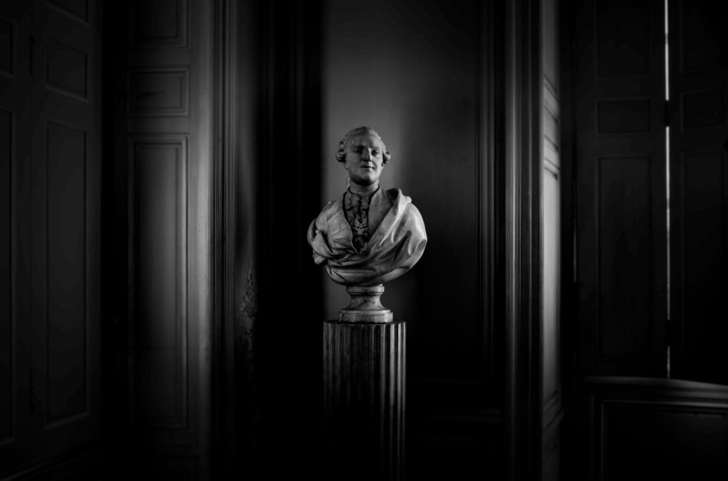 Louis XVI a fermé les volets. Dehors les cadavres de la révolution sont transformés en arbres et si on brise leur bois, s’écoulent à la fois leurs paroles et leur sang. Regarde-les pleurer, écoute les gémir. Si tu lèves les yeux tu verras la houle de leurs cimes lorsque, pour s’apaiser, ils se bercent. Tu sauras que ce n’est pas le vent #versailles#louisxvi #buste #sculpture #architecturephotography#domainedeversailles #blackandwhitephotography@gillesdalliere