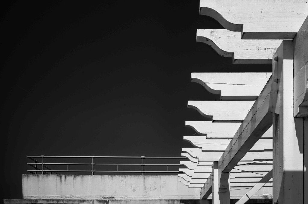 À La Pergola, aujourd’hui Centre Helianthal, bien que très défiguré par sa surélévation, il reste quelques vestiges du rythme des percements, des auvents, des élancements et la finesse de certaines découpes de menuiserie, éléments inspirants de l’architecture de Robert Mallet-Stevens. Ces jeux de matières parfois brutes souvent nobles aux couleurs contrastées sont autant d’éléments qui incitent à réinventer les codes balnéaires de Saint-Jean-de-Luz. #architecturephotography #lapergola#malletstevens #graphic #saintjeandeluz#blackandwhitephotography @gillesdalliere