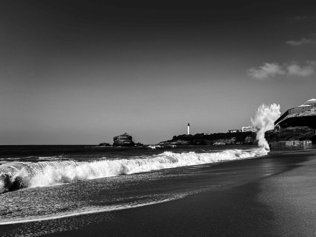 Miramar, Grande Plage, Port-Vieux, Côte des Basques, Marbella, Milady, Ilbarritz, la simple évocation de leurs noms me transporte immédiatement à Biarritz. La légende raconte que des marins biarrots rentrant de la pêche à la baleine bredouilles et découragés furent attirés par des sirènes magnifiques blotties dans la grotte naturelle de la roche ronde. Le capitaine obtint de Dieu que ces pêcheurs ne soient pas précipités dans les flammes éternelles. Ils conserveraient la vie mais seraient transformés en cormorans. Depuis cette époque, une colonie de ces oiseaux vit sur ce rocher jusqu’à la fin des temps. #grandeplage #grandeplagebiarritz#vague #mareehaute #landscapephotography#blackandwhitephotography @gillesdalliere