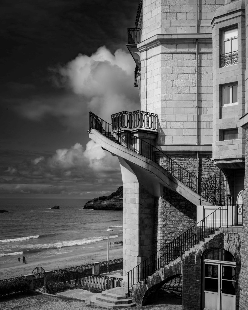 L’être est un mouvement, la pierre de l’escalier de la villa begoña a une destination. Et quand je pense au « Être ou ne pas être » de Hamlet je ne pense pas à cette alternative de la vie et la mort, mais à l’alternance du mouvement et de son ignorance. L’océan me lave de toutes les folies de la ville, de l’imperfection de l’œuvre. Il me lave de toutes les souffrances et de tous les deuils, en rugissant que tout n’est que mouvement et deuil, tout est perte, tout est mort, mais dans l’azur brassé, et dans l’émerveillement du ballottement originel. #villabegonia #villabegoniabiarritz#escalier #miramarbeach #architecturephotography#surfinglife #blackandwhitephotography @gillesdalliere