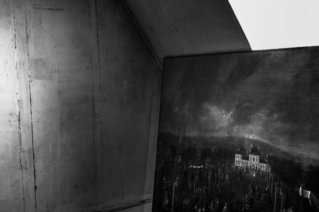 Je suis à l’Hôtel de Guise, au dernier étage, dans un grenier poussiéreux. Le soleil frappe la pièce de plein fouet, et les murs blancs éblouissent entre les lucarnes obscures. Les vitres sales retiennent des disques d’obscurité impénétrable. Dans l’angle subsiste une zone d’ombre. Il y a une autre forme attendant d’être dégagée de l’ombre ou bien des abîmes plus denses encore, révélant les nuances grisées de ce paysage et de ce château majestueux et flamboyant. #hoteldeguise #paris #ruedeluniversité #videgrenier#abandonedplaces #exposition #thema#blackandwhitephotography @gillesdalliere