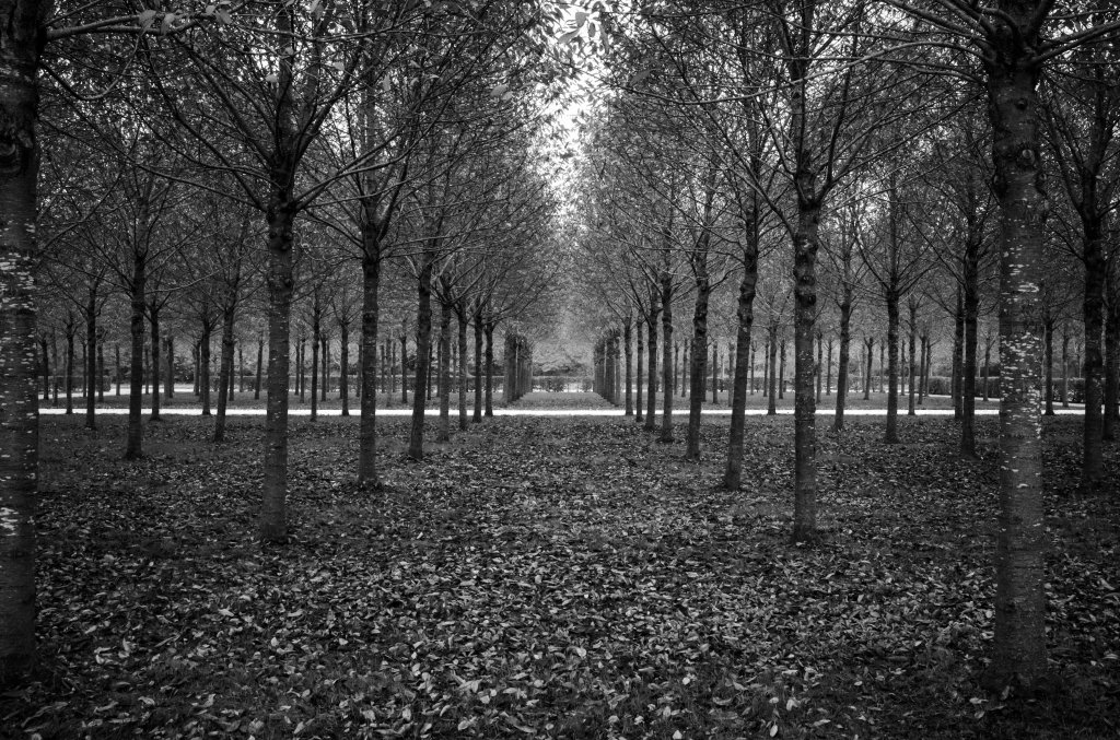 Les sentiers sont taillés dans la gorge des geais et le carnier des nomades. La ligne de fuite blanche est ensemencée sous l’élan des oiseaux. Les arbres prennent racine là où la terre se souvient de ses sommeils anciens. Le jardin va retrouver l’hiver sur la croûte du domaine où François 1er brûle de vivre. #chambord #chambordcastle #jardin#alignement #forest #blackandwhitephotography@gillesdalliere