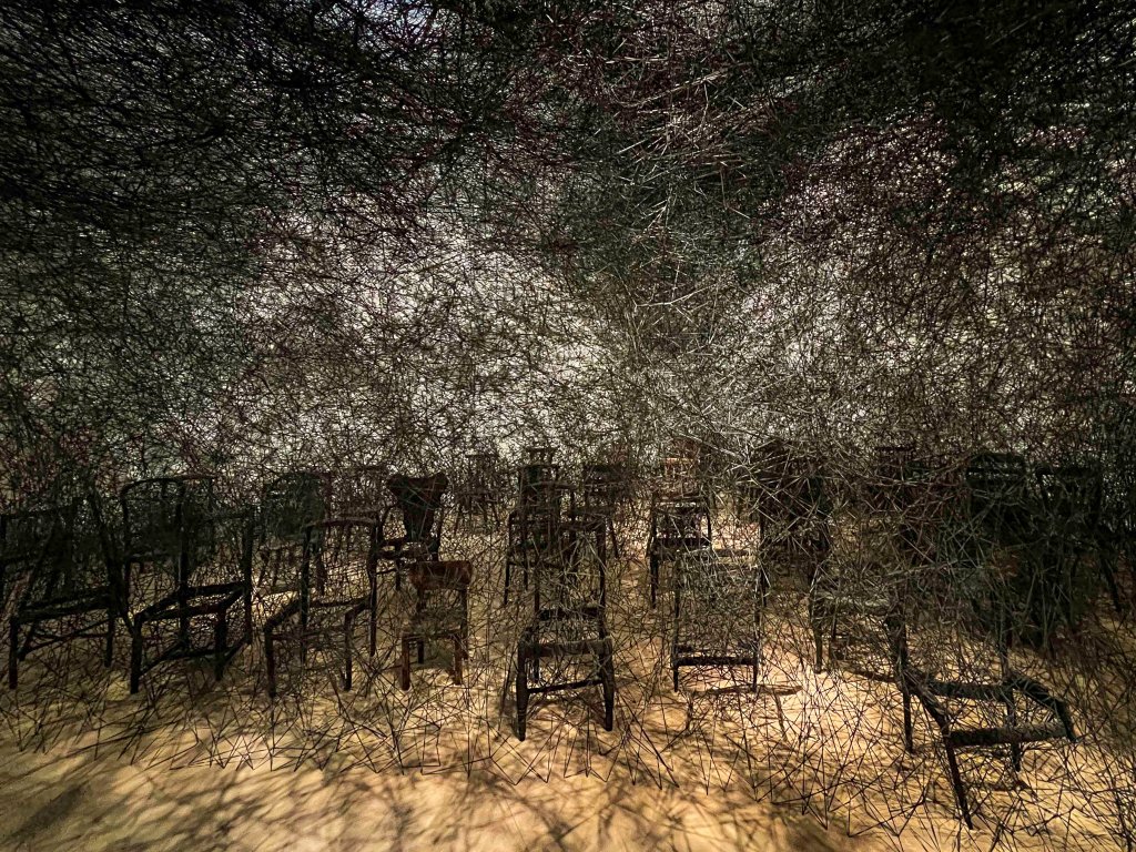 Le noir pour Chiharu Shiota, sert à traduire le vide, l’oubli et l’univers infini, le hors de soi. La question de savoir si cela est bien de l’art importe peu. L’effet imaginatif et sensoriel est esthétique. Un étonnement qui révèle autre chose sans pouvoir complètement s’expliquer. Stupeur positive qui suscitera probablement des passions inattendues durables ou éphémères. #exposition #expositionsparis#grandpalais #chiharushiota #installation #installationart@gillesdalliere @le_grand_palais