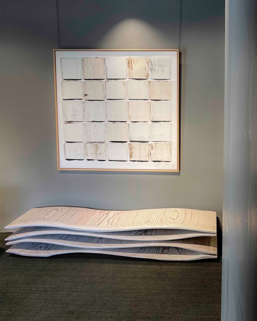 Antonin Gatier et la galerie ZEBRES présente jusqu’au 12 avril, en résonance, les œuvres de Louise Cara et le mobilier de Marc-Antoine Goulard. Bénédicte Vallet ponctue l’approche de ses céramiques. Louise Cara, c’est l’écriture, souple, relâchée, tendue. C’est un trait, dense, plat, régulier. C’est aussi une matière, profonde, noble, onctueuse. Louise Cara, c’est un geste silencieux. Marc-Antoine Goulard c’est une vague : « The Wave ». Le résultat d’un long processus de travail combiné à la mémoire de l’enfance. Une superposition de lignes courbes indissociables. Un geste qui n’autorise aucun effet gratuit, aucune séduction facile. Il requiert une attention particulière, non plus aux fioritures décoratrices, mais à l’œuvre elle-même. #art #peinture #sculpture#ceramique #exposition # #artparis @louise_cara_peintre_@marcantoinegoulard1 @zebres.paris