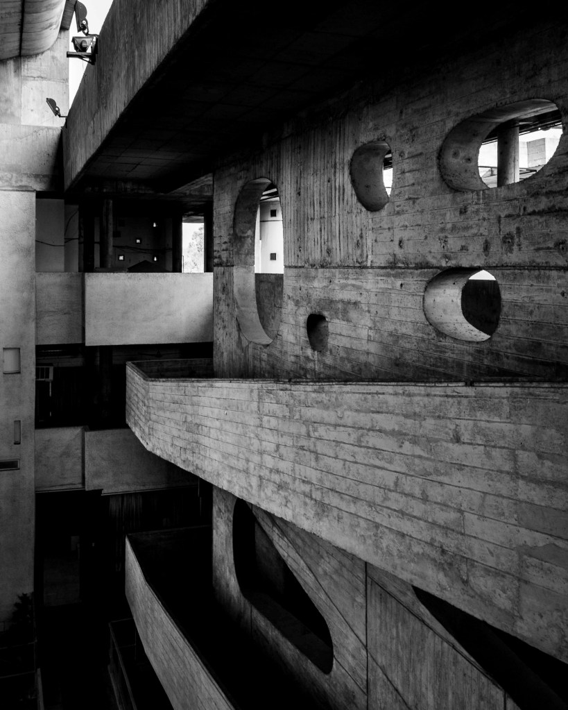 Le fenêtrage de la Haute Cour, est l’une des plus belles compositions abstraites de Le Corbusier. Le réseau complexe et rigoureux des rampes intérieures qui conduisent les visiteurs aux salles d’audience affirment la même dynamique. #lahautecour #chandigarh #chandigarh_diaries#lecorbusierarchitecture #incridibleindia#blackandwhitephotography @gillesdalliere