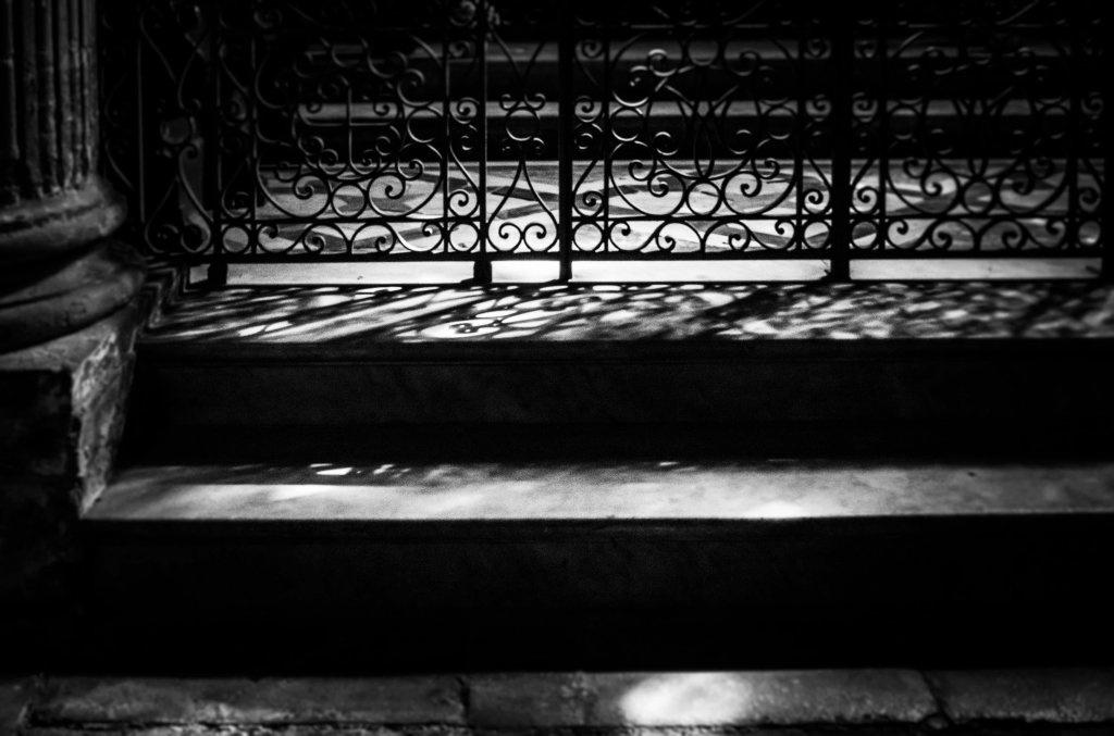 Le ciel passe lentement dans les vitraux de Notre-Dame-des-Victoires. Il caresse le chancel du chœur liturgique, avance tout entier à la lente vitesse de la terre. Les ombres portées du fer forgé sont emmenées dans la direction de l’immensité. #trouvillesurmer #église#notredamedesvictoireschurch#lightandshadowphotography#architecturephotography #leicaedc#leicacamerafrance#blackandwhitephotography @gillesdalliere