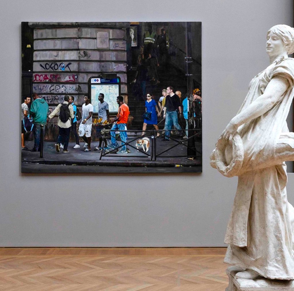 Non ce n’est pas de la photographie ! grâce au soutien de la galerie Templon, carte blanche pour le peintre Bilal Hamdad dont les œuvres dialoguent avec la collection permanente du Petit Palais. 21 toiles qui mettent en lumière son « Paname » et l’histoire de l’art. Une peinture qui explore les paradoxes de notre époque et rend visible l’invisible.#petitpalais #carteblanche #peinture#exposition #paname @petitpalais_musee@bilalhamdad