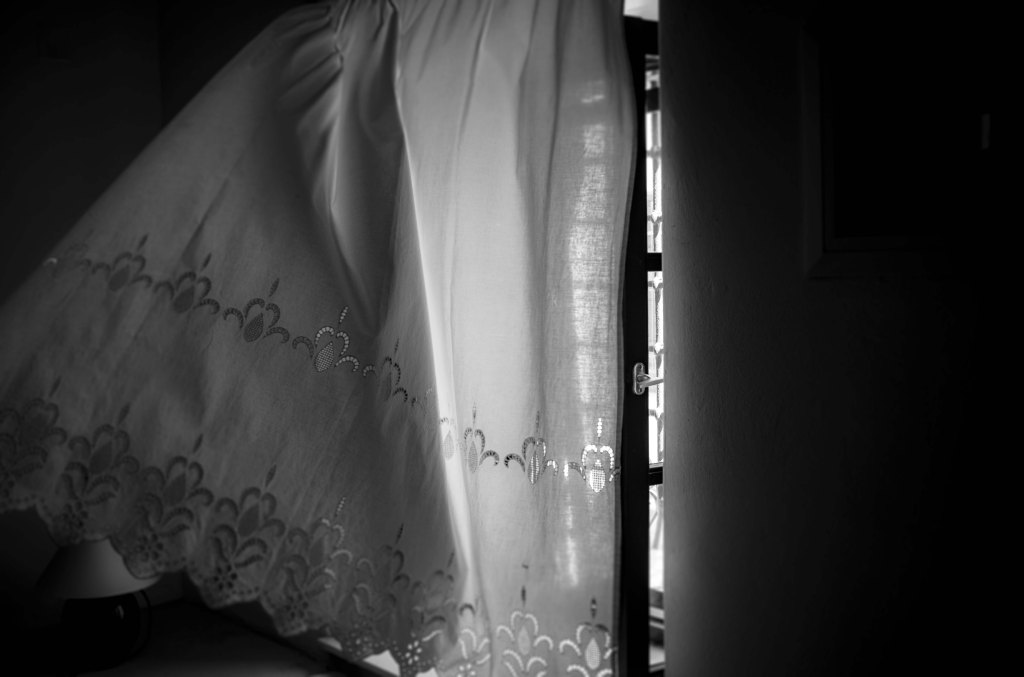 Je me suis adossé à un mur et je regarde la blancheur idéale du rideau. C’est vrai, je n’ai pas regardé mon visage dans le miroir. Je le contemple pourtant chaque matin et je cherche dans mon regard la marque prégnante de ce vide en moi, de ce manque qui me relie à l’enfance. Je regarde la fenêtre, je la considère dans toute sa beauté. Le rideau brodé qui vole au vent, est comme une page à écrire. Je vole dans mes pensées, je souris légèrement, et pour un temps, j’échappe au brouhaha de la rue.