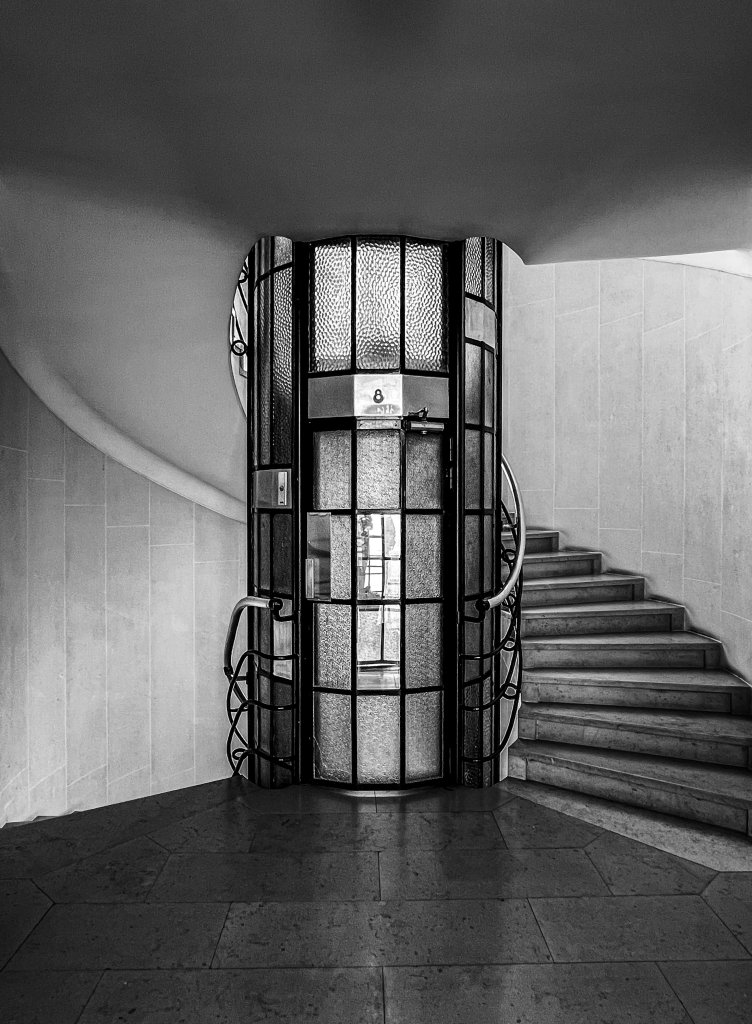 L’escalier est un squelette de béton, et le mouvement de vrille de son élévation n’est pas sensible sans le revêtement de verre de la cage d’ascenseur, cette transparence froissée, cette cataracte de glace qui efface toute la structure. Plus il monte haut, plus le regard se portera haut, plus il deviendra transparent, jusqu’à n’être plus rien qu’un espace mental. A sa base, il est de marbre beige et c’est sur les veines de la matière que repose l’élan transparent de l’imaginaire. #rendezvousdechantier #escalierdesign#1930s #escalierdeverre #lumière #transparence#architecturelovers #architecturephotography#blackandwhitephotography #leicaedc#blackandwhitephotography @gillesdalliere
