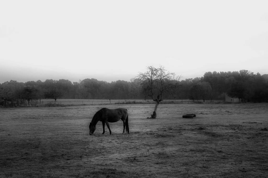 C’est la photo qui répond le mieux à cette idée que penser est avant tout, à la racine, en tant qu’acte, déchiffrer ce que l’on sent. Et aussi cette idée que l’homme est l’être qui souffre sa propre transcendance en un incessant processus d’unification entre la passivité et la connaissance, l’être et la vie. La clairière s’ouvre entre ciel et terre au sein de l’initiale frondaison. À l’horizon, se noient le ciel et la terre, l’être et la vie, la vie et la mort. #valdeloire #tuffé #clairière #sousbois #aube##landscapephotography #leicaedc#leicamonochrom #leicacamerafrance#blackandwhitephotography @gillesdalliere